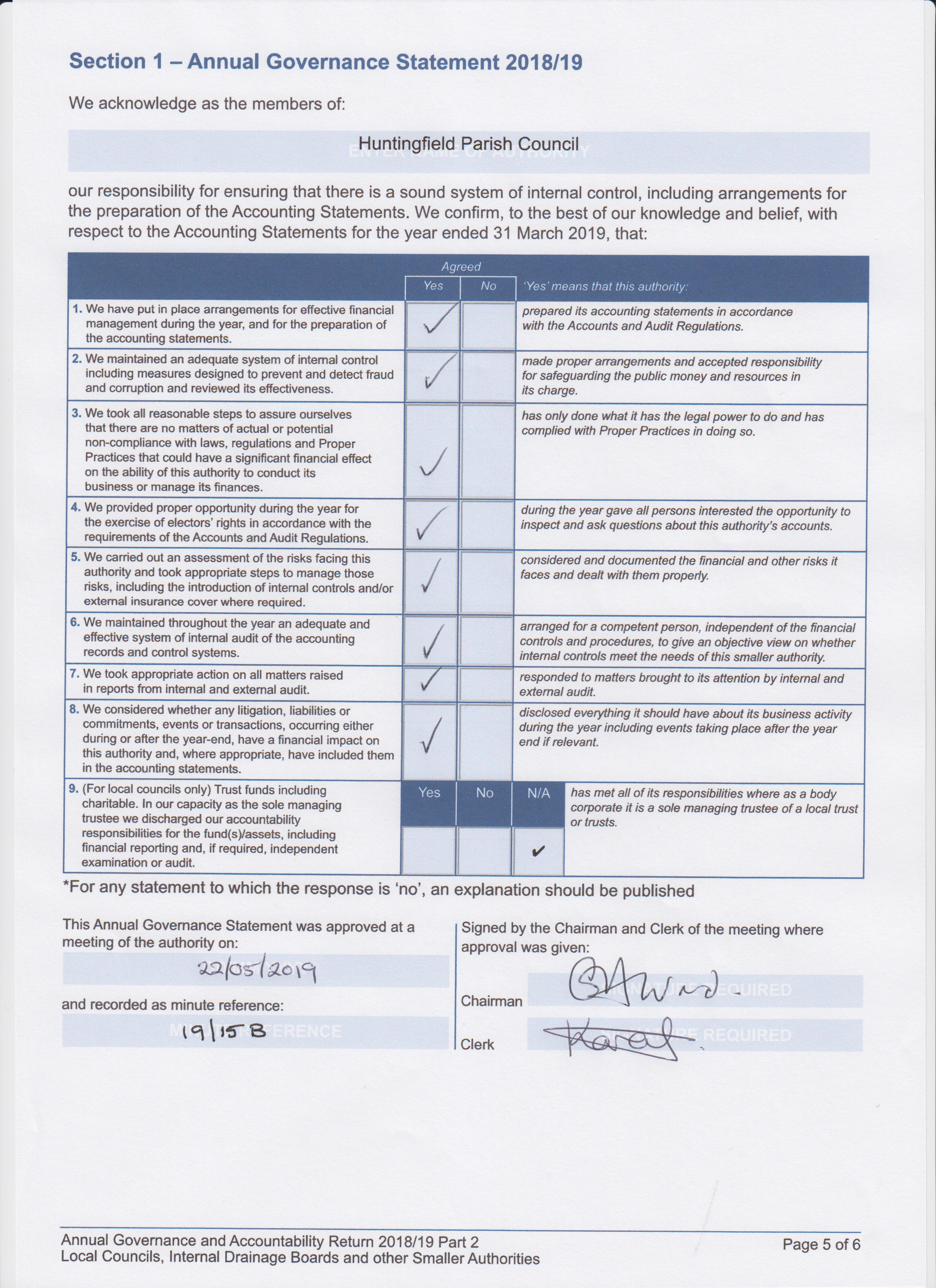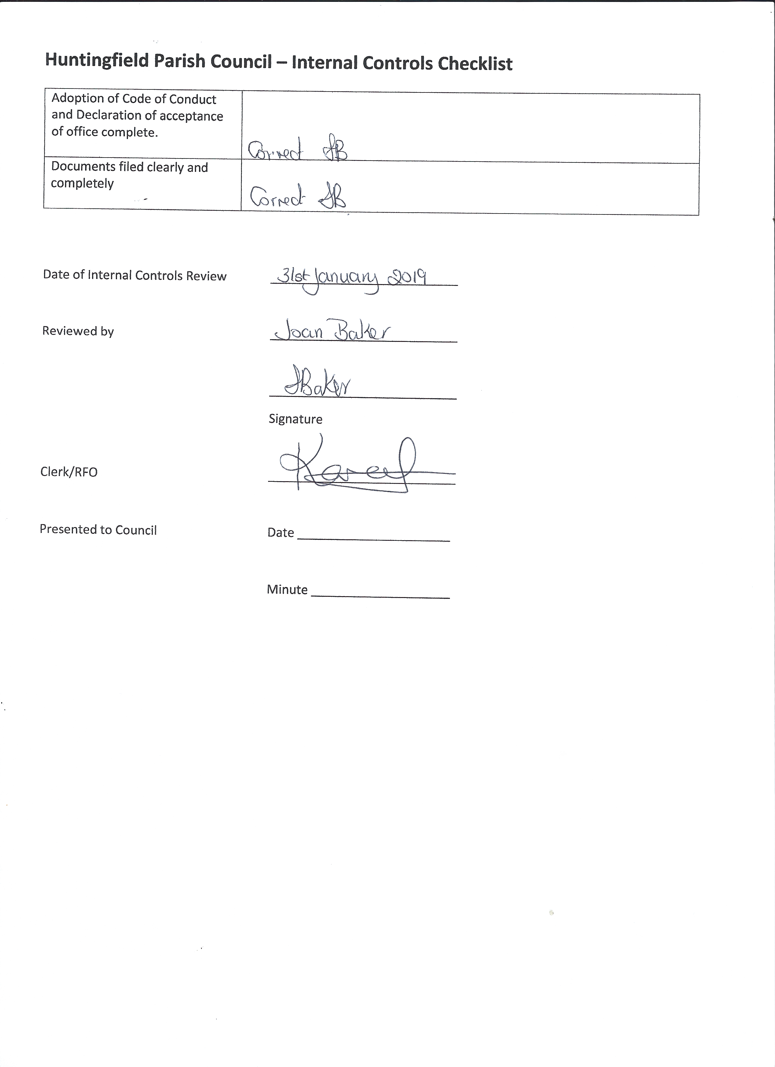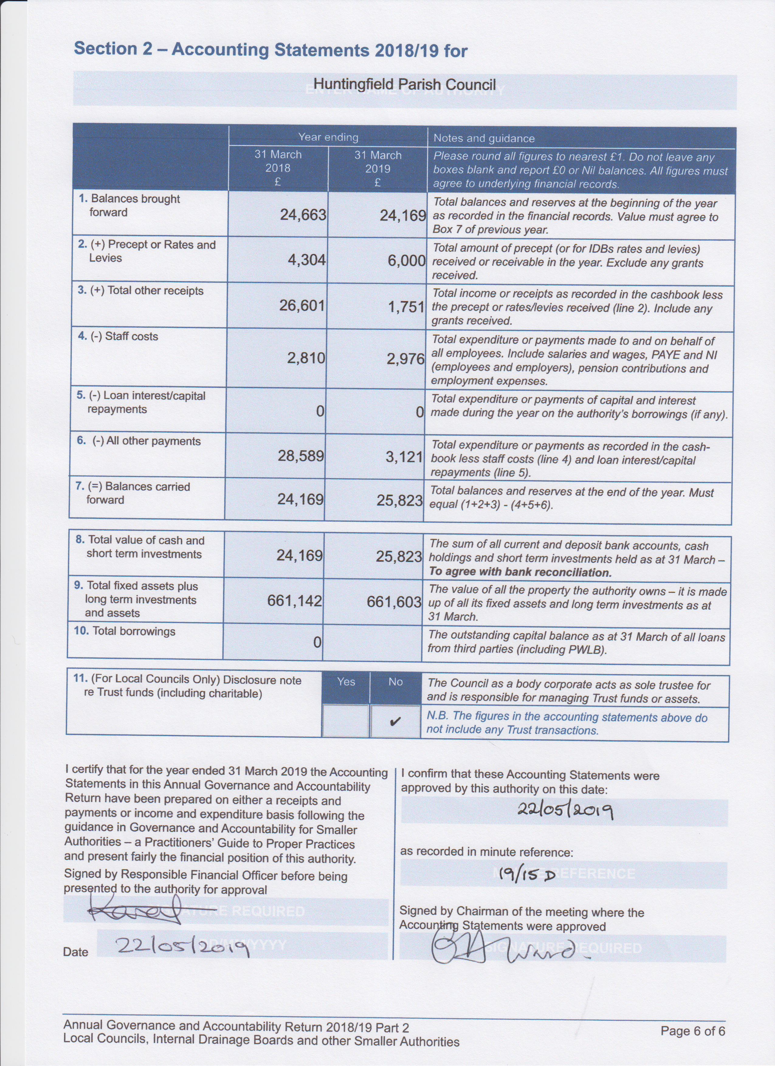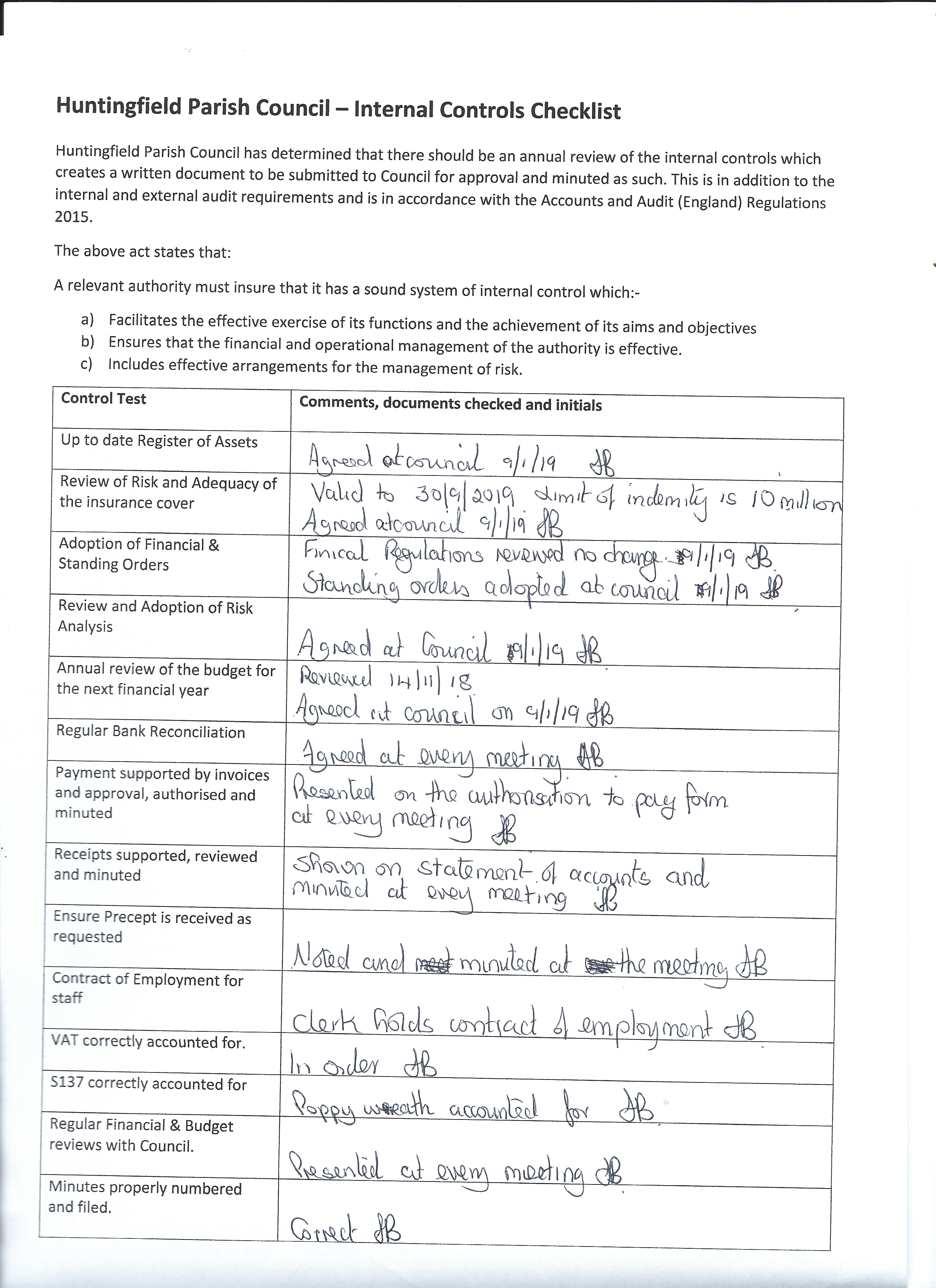 Huntingfield Parish Council reviews the accounts at each regular meeting. There are two documents
